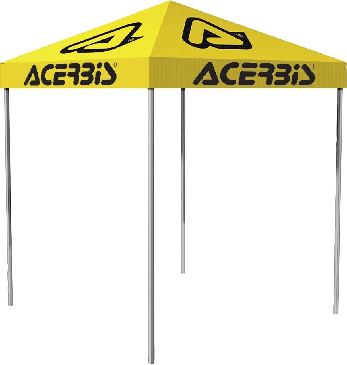 This Acerbis Tent is the ultimate popup tent! Constructed of hexigonal aluminum tubing, the frame is incredibly strong and sturdy, and it is also adjustable for different heights. Unlike some inferior popups, the Acerbis tent can be raised and lowered while staked down; it can be lowered over the bikes at night and quickly raised again in the morning without hassle. The tent fabric is durable and sharp looking. Acerbis A logos ensure that your pit will standout. Includes heavy duty carrying bag with dual zippered ends, multiple carry handles, roller wheels, and a pocket for the included stakes.