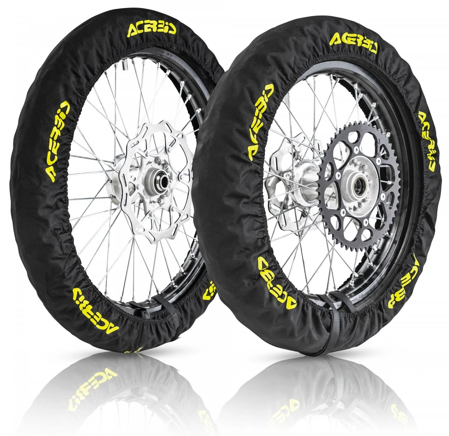 USE: Wheel covers are used to avoid getting the bike’s tyres dirty in the presence of mud and/or sand (for example after washing the bike), or before a competition at the starting grid, to avoid clogging the tyre treads, allowing the rider to have a fast start with the best possible grip and riding control.