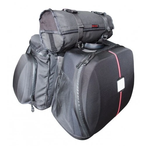 Over the last couple of years I have been developing a bag to fit neatly on the top of my Pannierz. I wanted a bag that would provide quick access to light and useful gear like wet weather pants, a neck warmer or my compressor to adjust tyre pressures when swapping from tar to dirt. It’s a very useful item to grab wet weather gear when it’s pissing it down.