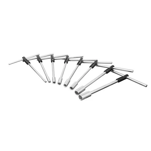 - 8 piece T-handle socket wrench set enables quick removal and fitment of motorcycle fasteners