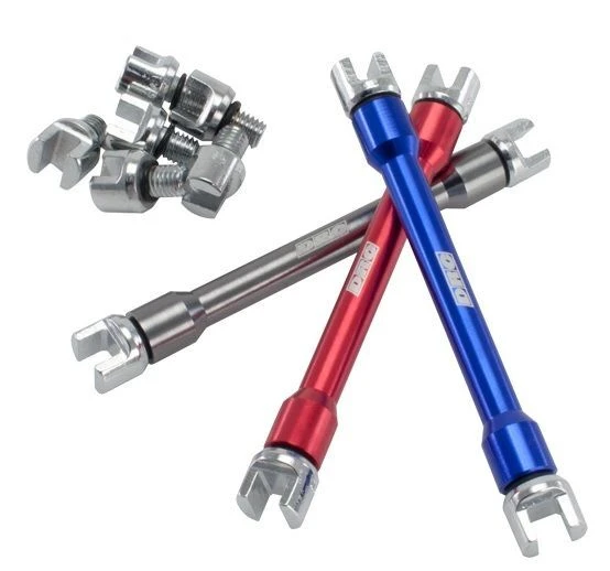 - Interchangable tips to fit 8 sizes of spoke nipples.