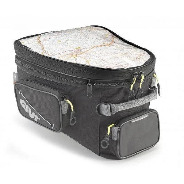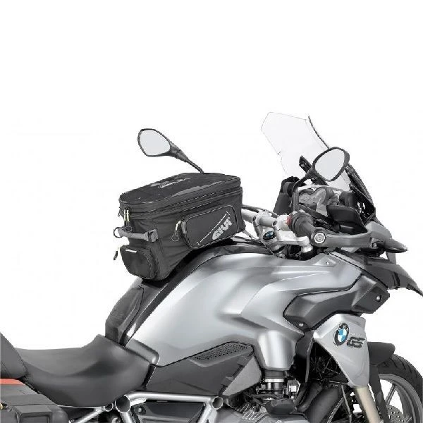 The GIVI Tanklock System eliminates the need for straps & magnets & is specially suited to motorcycles with a plastic tank. A sturdy polypropylene retaining ring is mounted to the fuel cap frame on the tank & the bag is locked in position by the patented quick-release mechanism. Operation is extremely quick: just drop the bag in place to lock it & pull the red spring-loaded tab to release it. The fuel cap remains easily accessible to fill-up at the fuel station & most bags can be repositioned by moving the whole mount back or forward on the base plate.